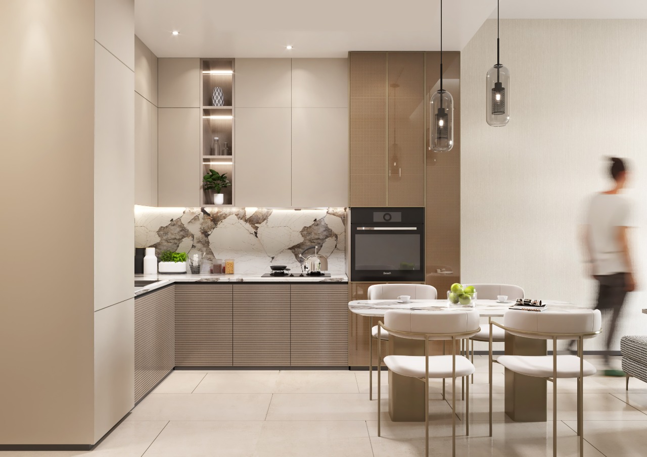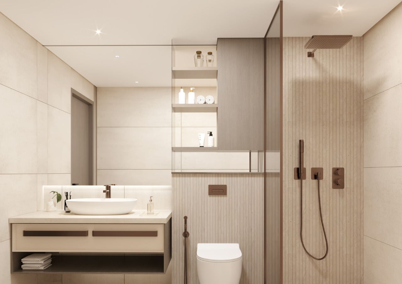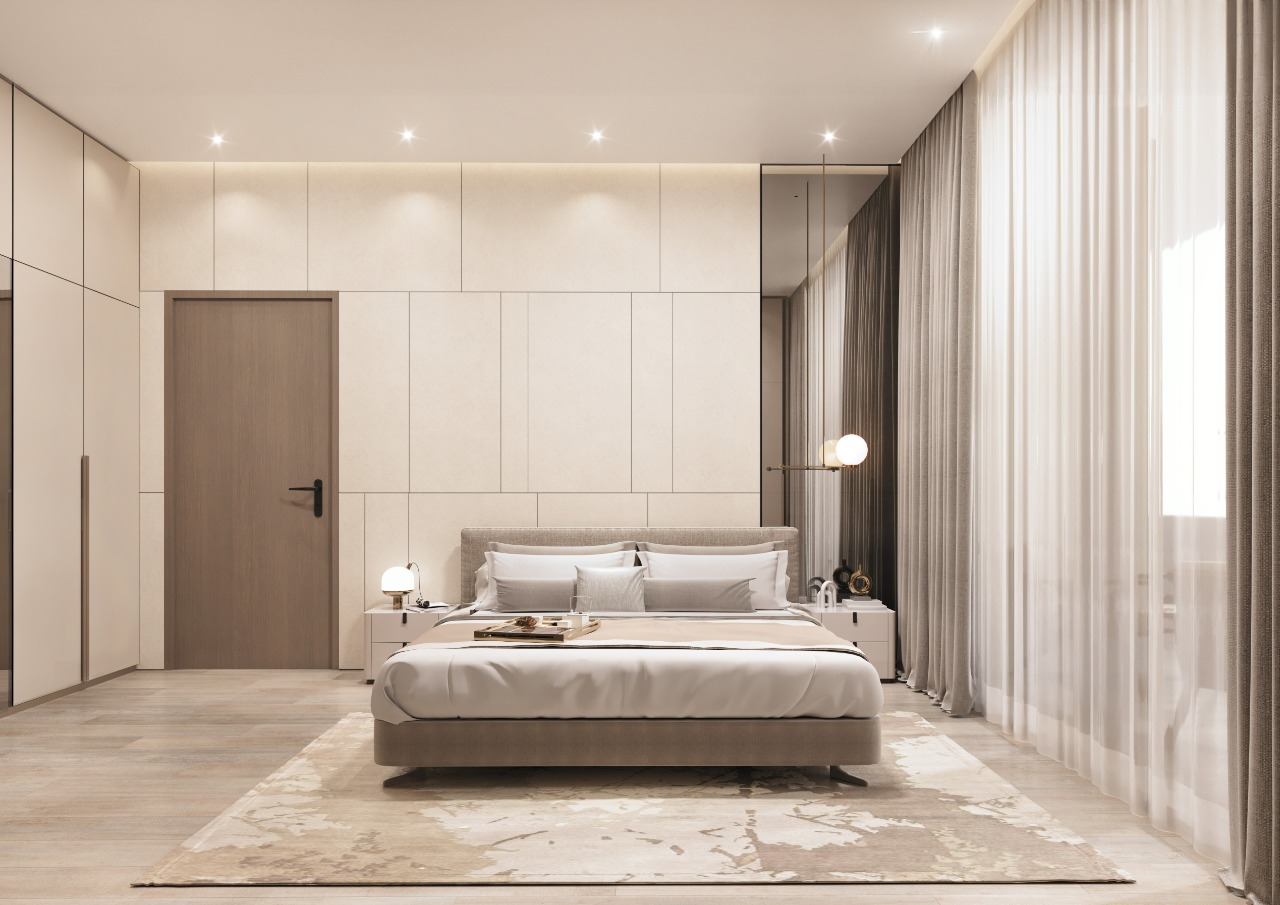 Each unit layout is meticulously crafted, featuring a harmonious blend of luminous hues that epitomize luxurious functionality. The apartments boast abundant living spaces with panoramic views and are adorned with exquisite fittings, from designer faucets to resplendent doors, ensuring a flawless amalgamation of style and artistry.